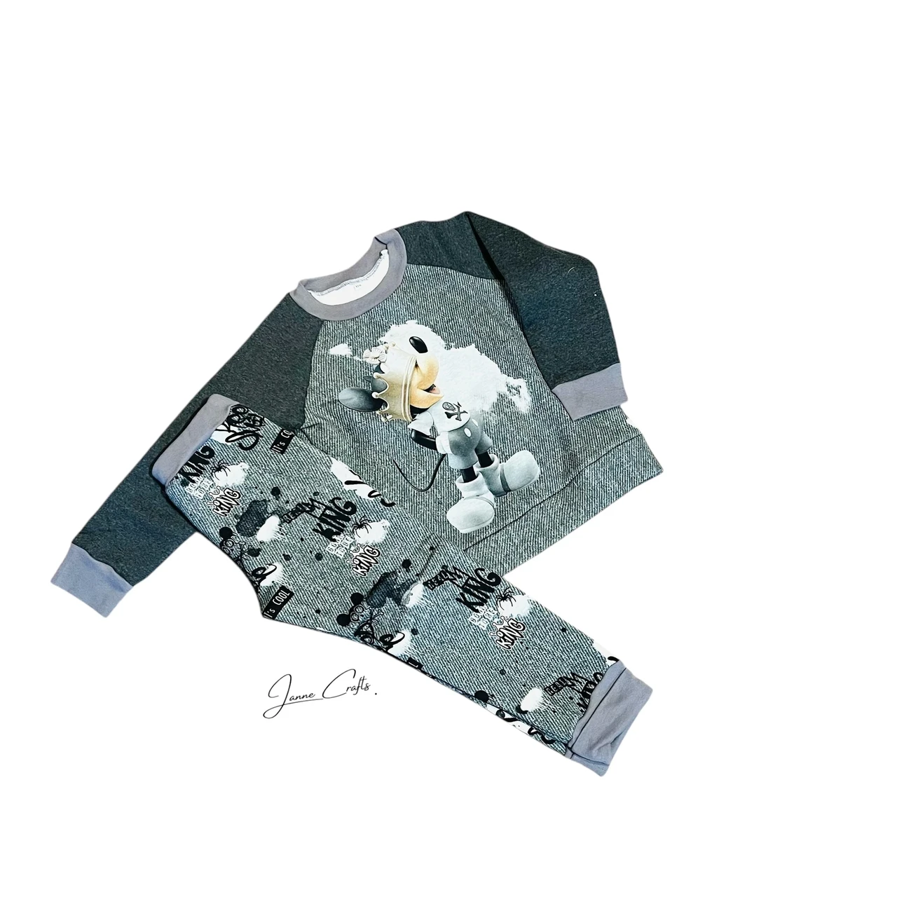 Paksust, seest pehme karvaga dressikomplekt mikiga. Taskutega dressipüksid ja pildiga pusa.