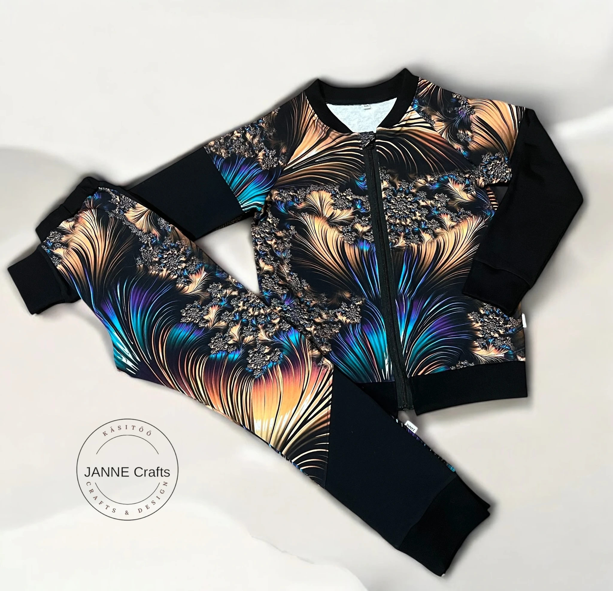 Elegentne komplekt sulgedega - lukuga pluus ja taskutega püksid.