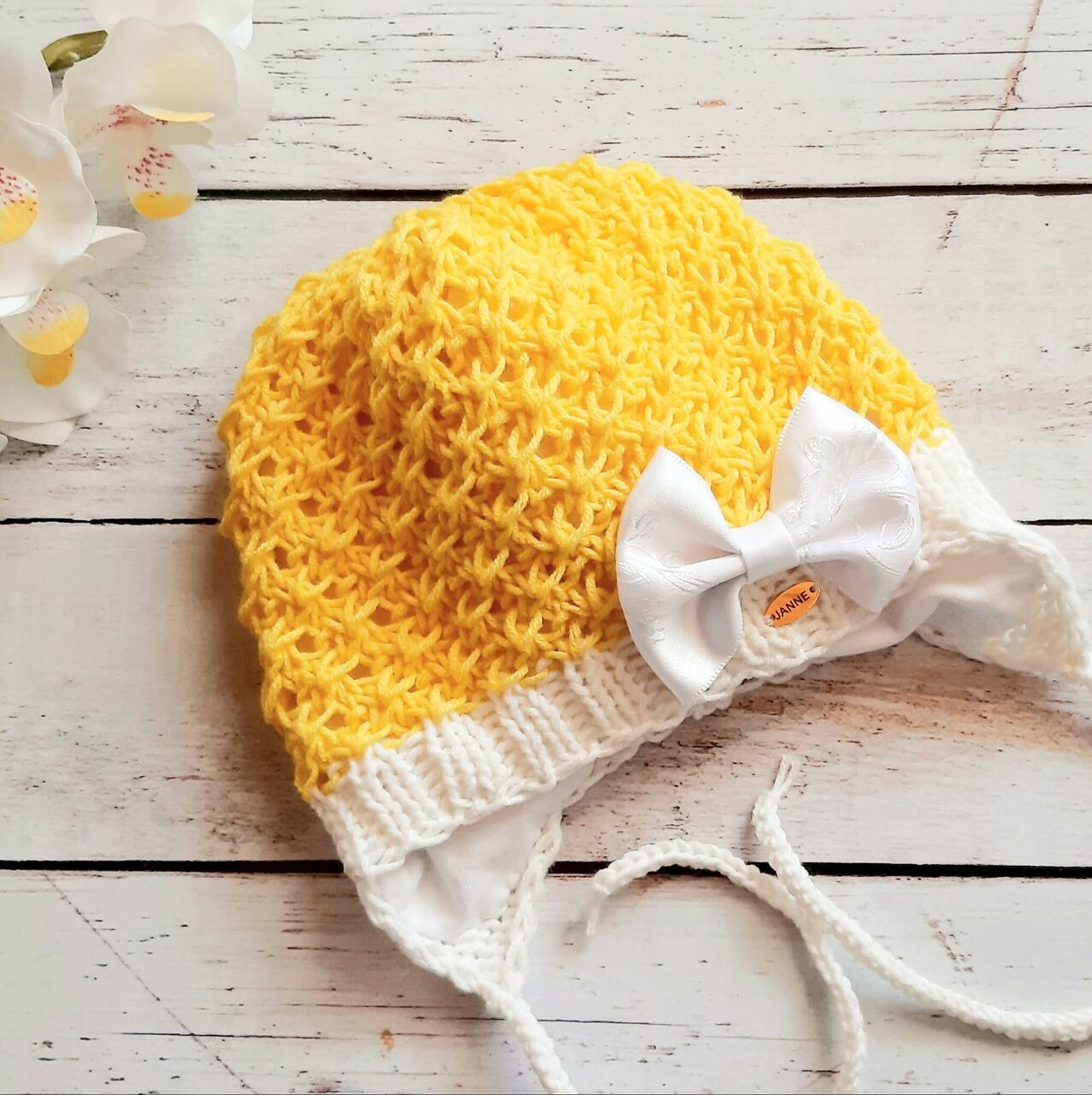 Kaunis lipsuga päikesekollane müts on kui esimene kuldne liblikas kevadiste kiirte käes. Pitsiline mütsike ühendab endas kõik hea: