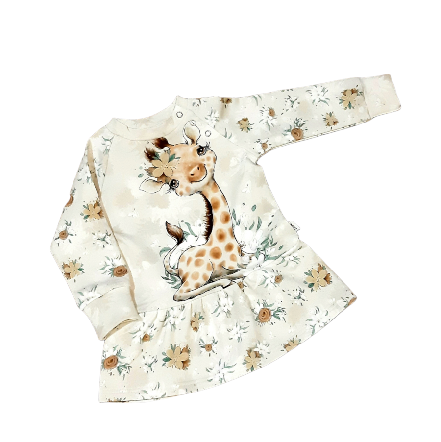 Suurused on meil pigem varuga, mis tähendab, et suurus 80cm on kasutatav veel ka 86 cm-sel. Tuunika aga on imeline rõivas, mis alguses on kleit, siis tuunika ja lõpuks lihtsalt pusa. Varruka otstes on soonikud, mida saab kenasti peale keerata ja siis aeg-ajalt tagasi pöörama hakata.